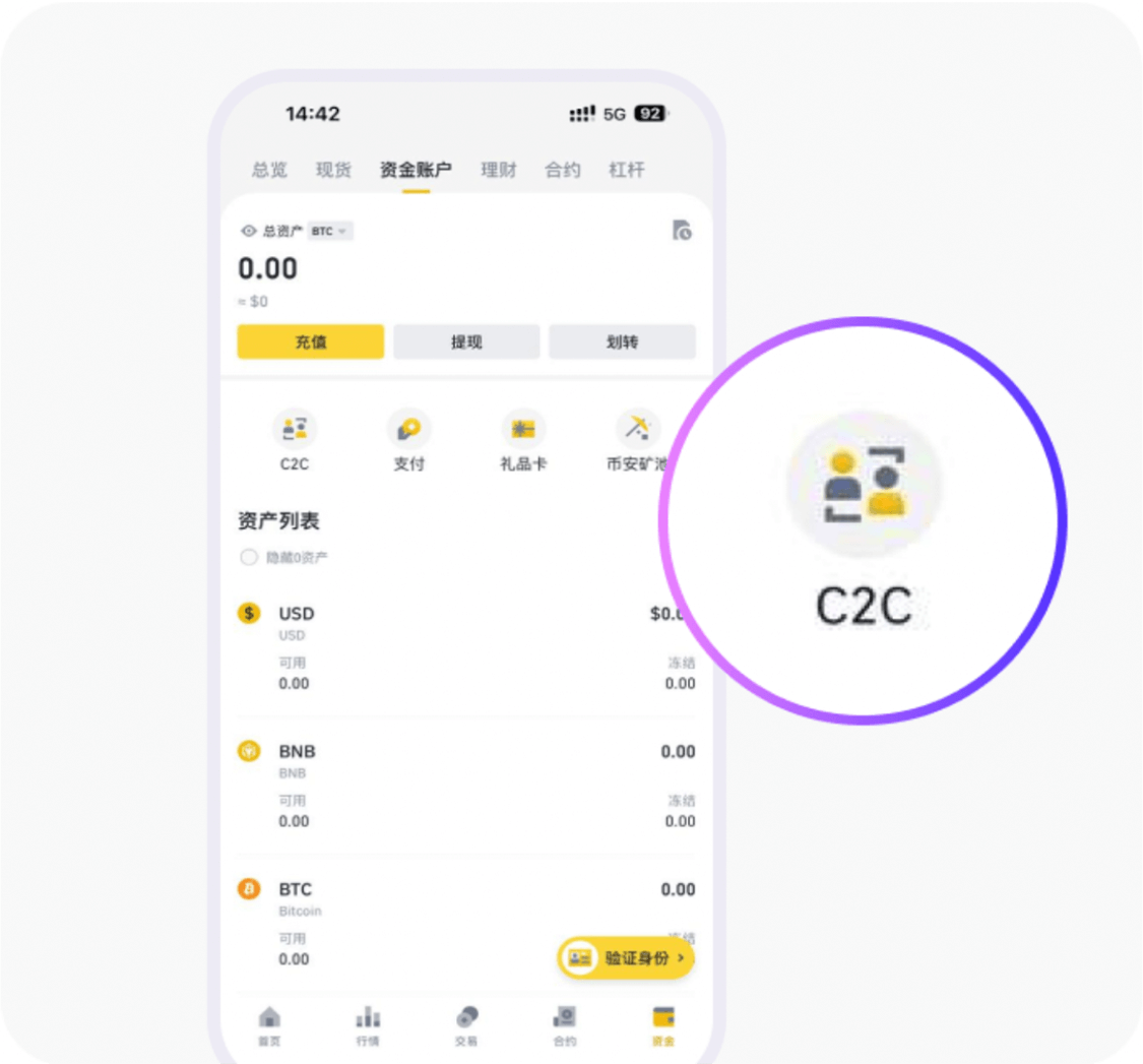 认证后点击“立即入金”,可选择快捷买币或者C2C